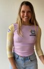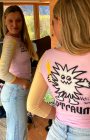 Da das Shirt normal geschnitten und ziemlich elastisch ist, gibt es auch nur 3 Größen: XS für alle von 34-36; S/M passt allen Mädels von Größe 34-38; L/XL passt dann von38-42. Grössen sind vergleichbar mit unseren woman wide T-shirts