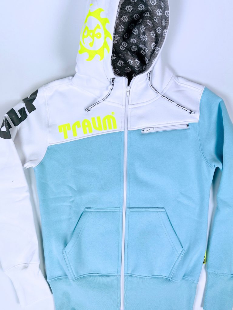 Super stylische Kapuzensweatjacke in tollen Farben und angenehmen Material. Oben schräg abgesetzt, zwei Eingriffstaschen und eine kleine Brusttasche mit Zipper und wie immer, viele schöne Details: Label am Ärmel, bedrucktes Nackenband und schönes Nahtlabel (übrigens: auf diesem Nahtlabel, das seit vielen Jahren in alle unsere Shirts, Sweats und Jacken… eingenäht wird, kannst du diesen guter Segen lesen: STAY HEALTHY)