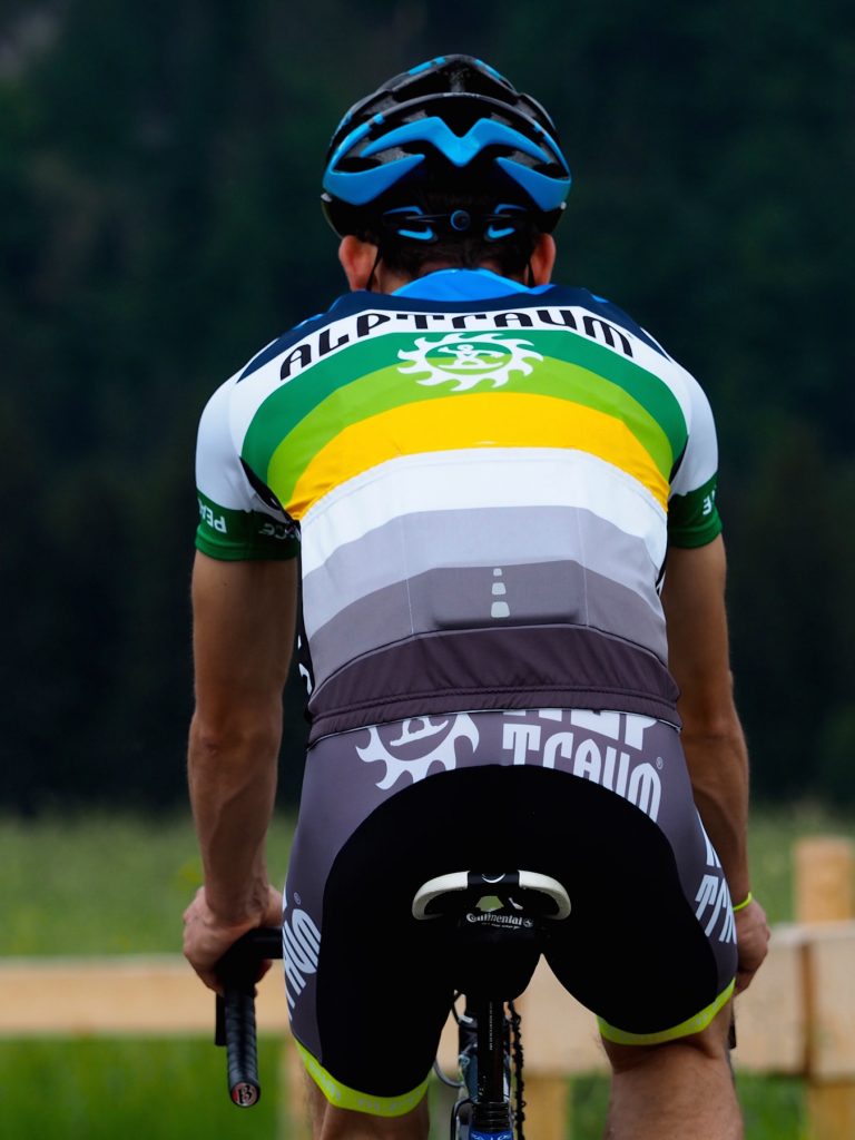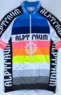 Buntes Rainbow-Trikot im bewährten ALPTRAUM-Schnitt, mit 3/4 langem Front-Zipper, drei praktischen Taschen mit reflektierenden Punkten am Rücken. Aus tollem Coolmax-Material, da schneller wieder trocknet.