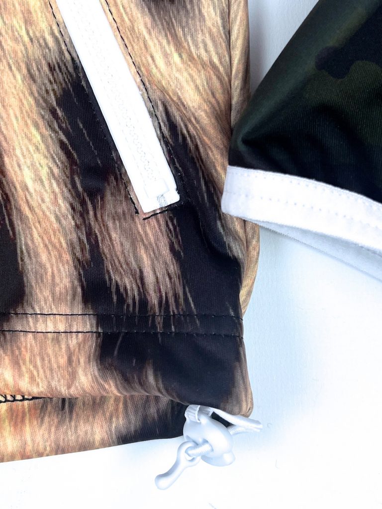 Klettverschlüsse und der Kontakt mit rauen Sachen (manchmal auch die Träger vom Rucksack) können die Oberfläche des Materials anrauen, dies ist kein Bestanteil der Garantie.