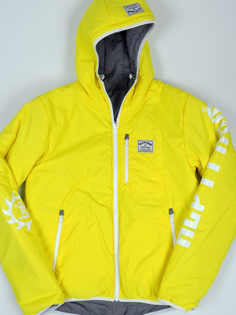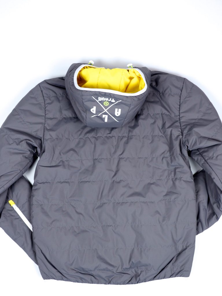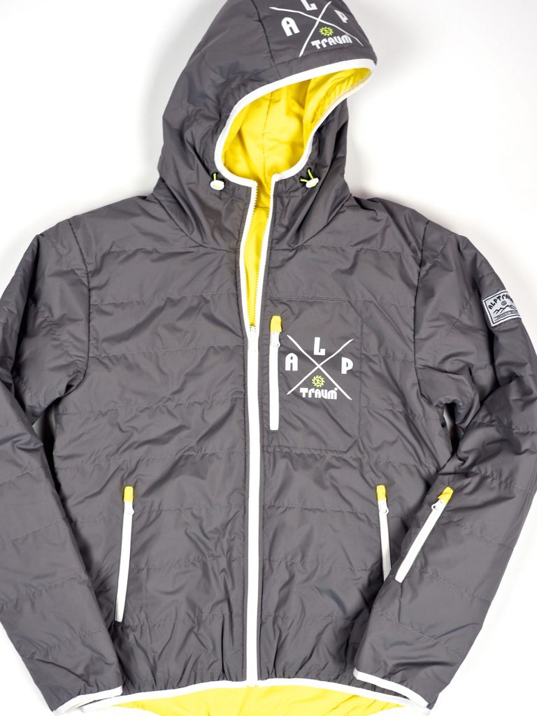 Du kannst sie wenden, hast also zwei verschiedene wunderschöne Außenseiten jeweils mit praktischen Reißverschlusstaschen, warmer Kapuze und und und. Bei Bedarf (z.B.: bei Regen, extremer Kälte…) passt auch noch ein Jacke darüber, da sie ja gut komprimierbar ist! Im Rucksack nimmt sie nur wenig Platz weg und ist sehr leicht, darum auch ideal als „Gipfeljacke“.