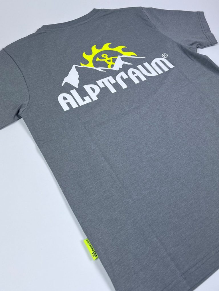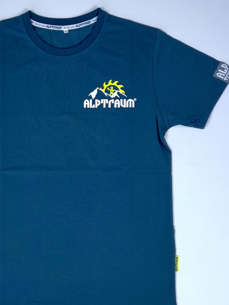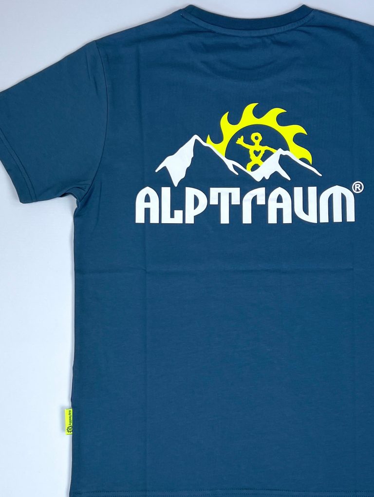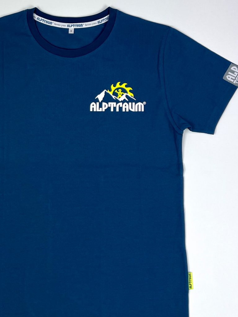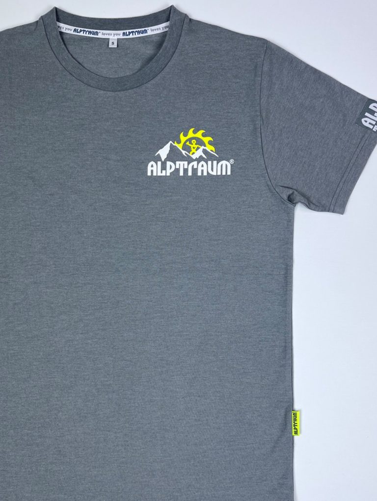 T-shirt mit stylishem kleinen Berg-Print vorn und großem Berg-Print hinten, Label am Ärmel, bedrucktes Nackenband und schönes Nahtlabel (übrigens: auf diesem Nahtlabel, das seit vielen Jahren in alle unsere Shirts, Sweats und Jacken… eingenäht wird, kannst du diesen guter Segen lesen: STAY HEALTHY)