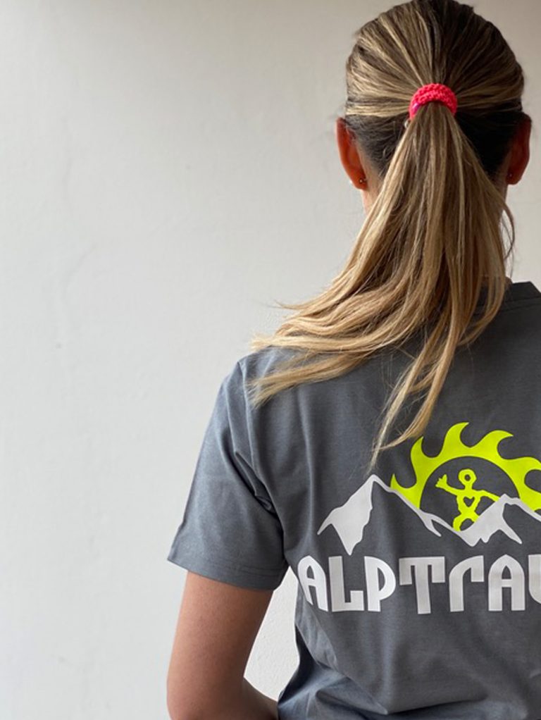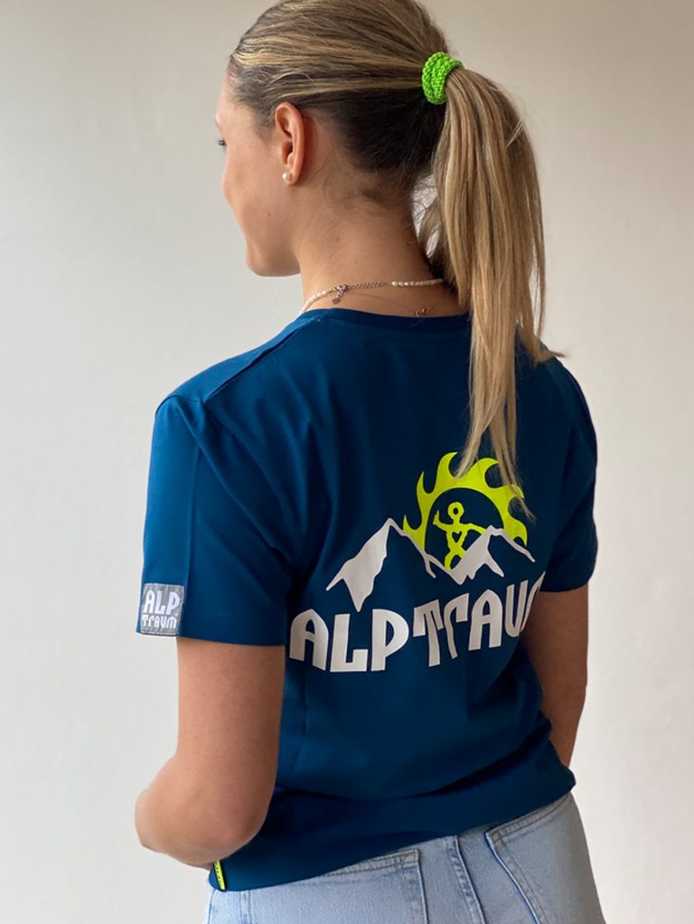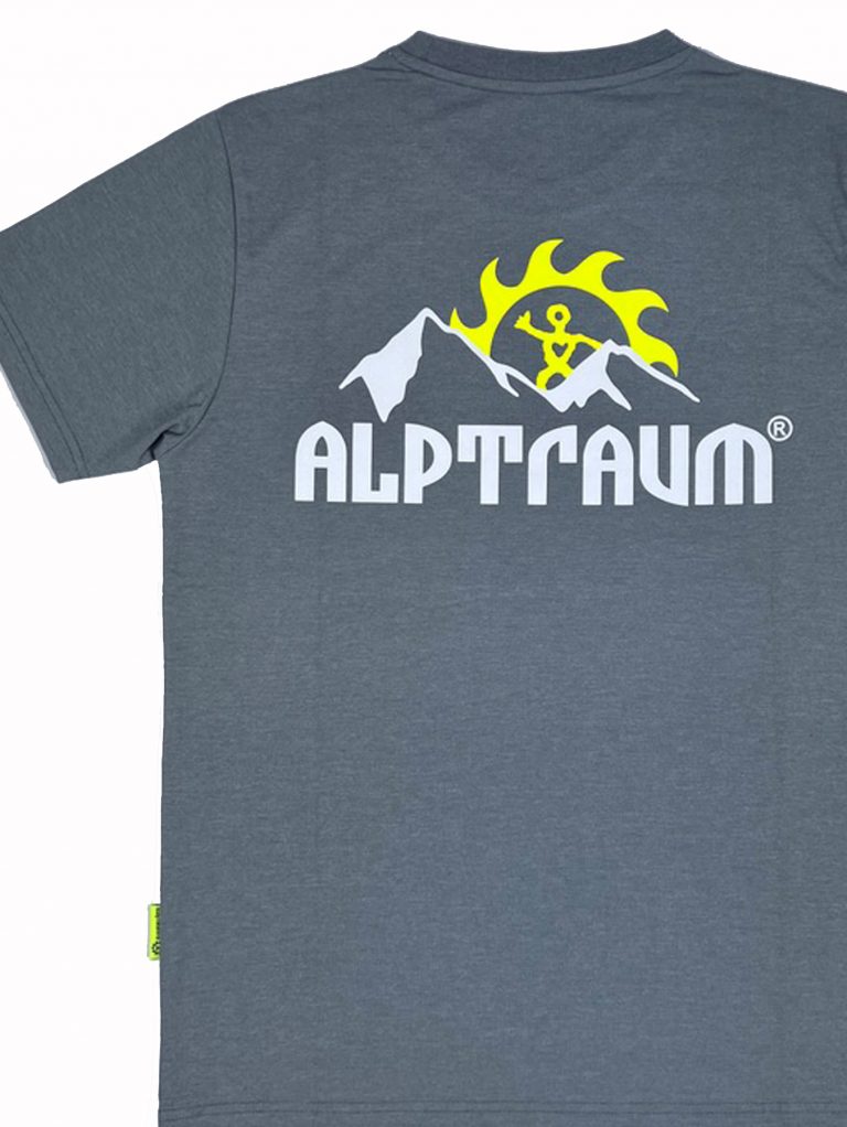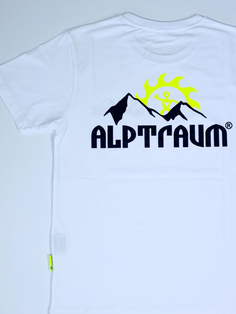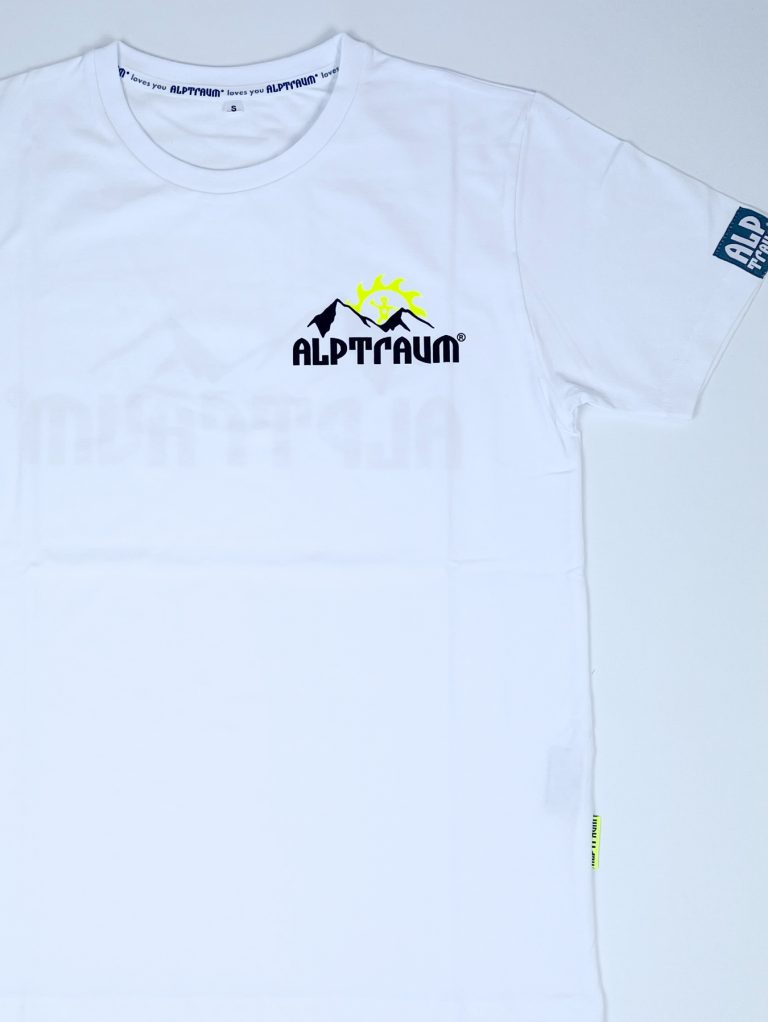 T-shirt mit stylishem kleinen Berg-Print vorn und großem Berg-Print hinten, Label am Ärmel, bedrucktes Nackenband und schönes Nahtlabel (übrigens: auf diesem Nahtlabel, das seit vielen Jahren in alle unsere Shirts, Sweats und Jacken… eingenäht wird, kannst du diesen guter Segen lesen: STAY HEALTHY)