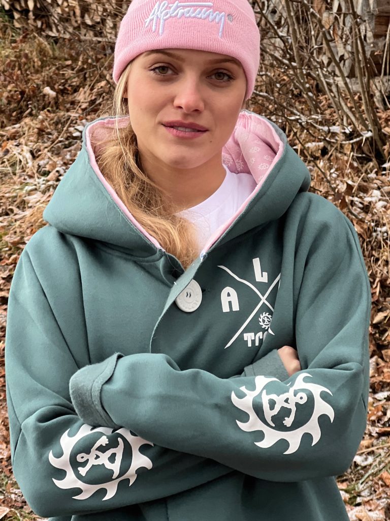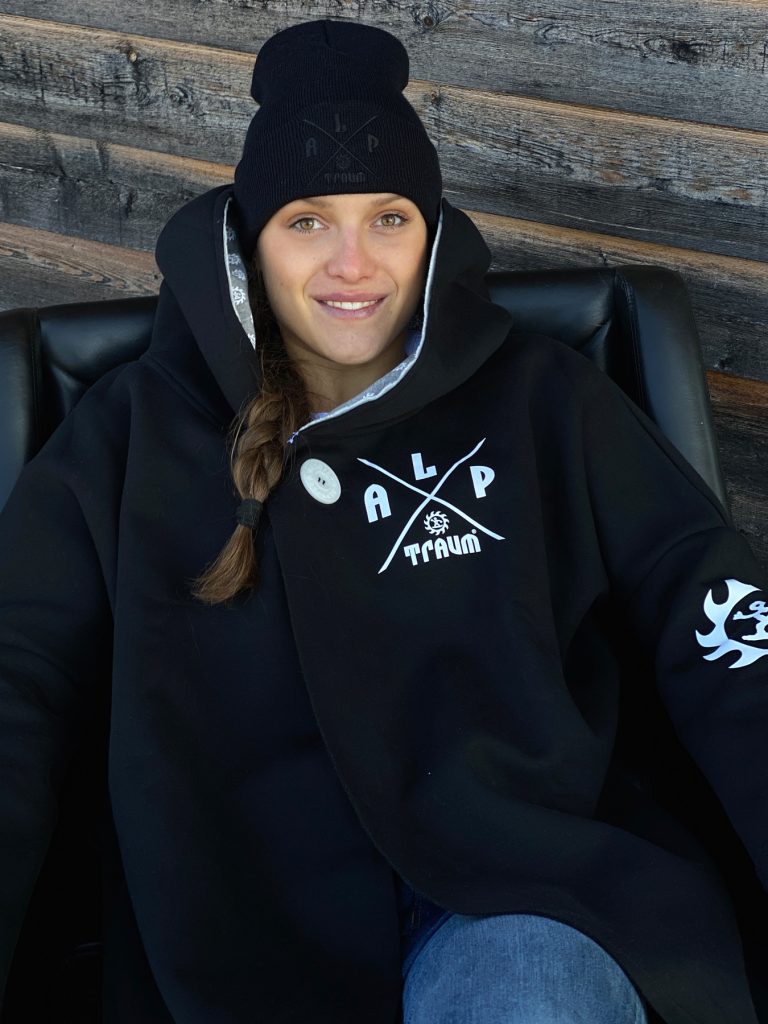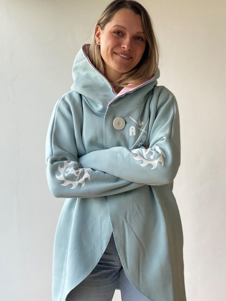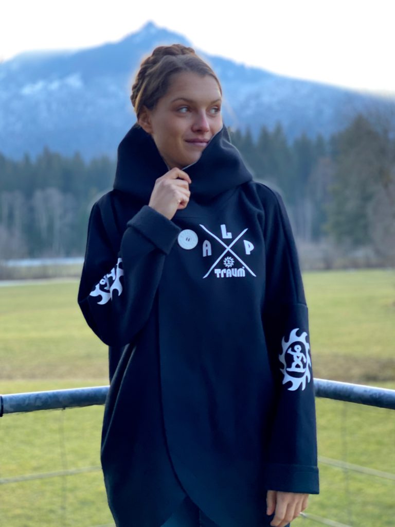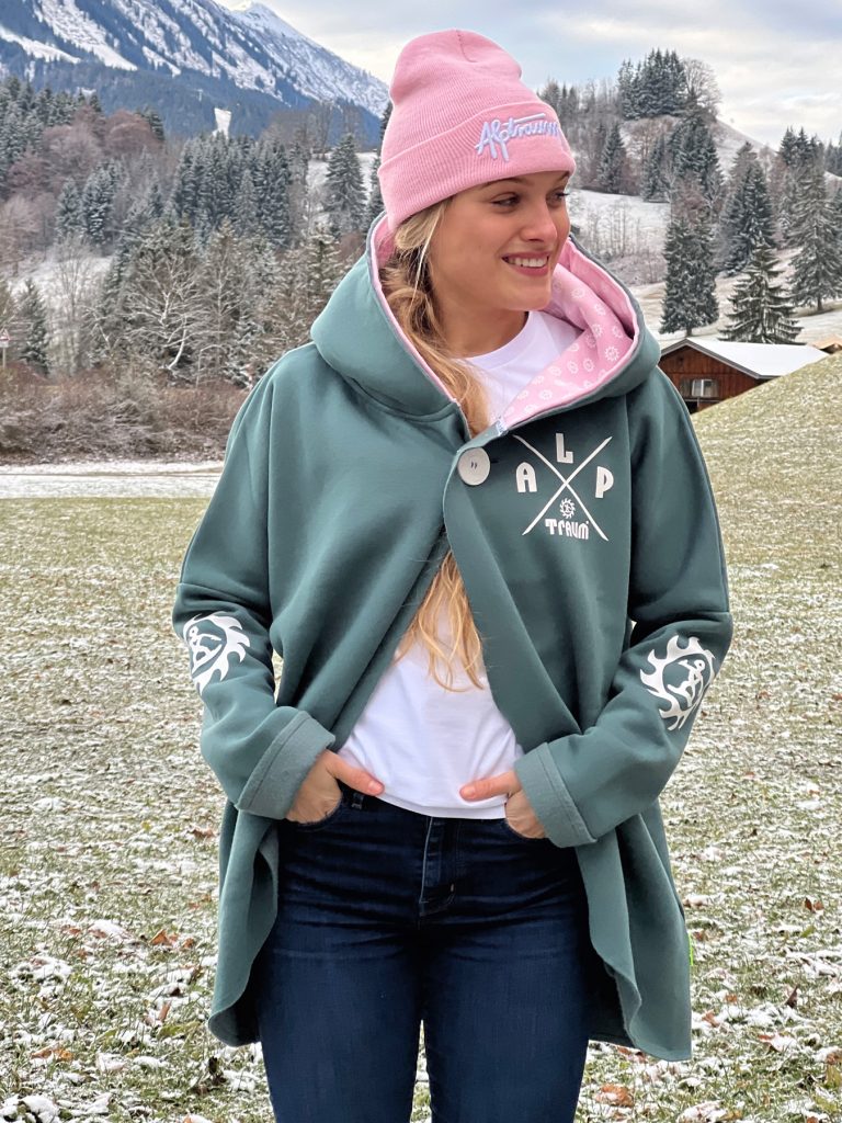 Wunderschön lässiger, weicher Sweatshirt-poncho. Dein absolutes Wohlfühl-Teil hat zwei Taschen seitlich und eine fette Kaputze. Ein fetter schöner ALPTRAUM – Knopf dient als Verschluss. Perfect zum chillen am Strand order Kamin, schnell zum Drüberwerfen über T-shirt oder Sweatshirt, zum Spazierengehn oder auch bei der Schreibtischarbeit. Die Aussenkannten sind alle unversäumt, wodurch der look noch lässiger wird. Es gibt nur eine Grösse, one sizes fit`s most.