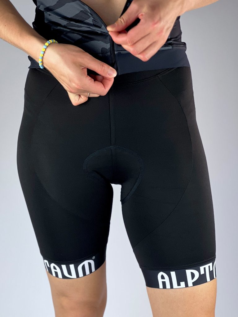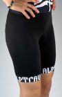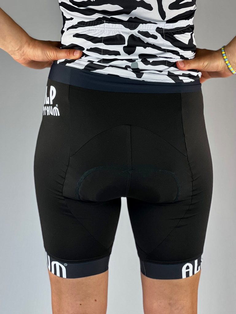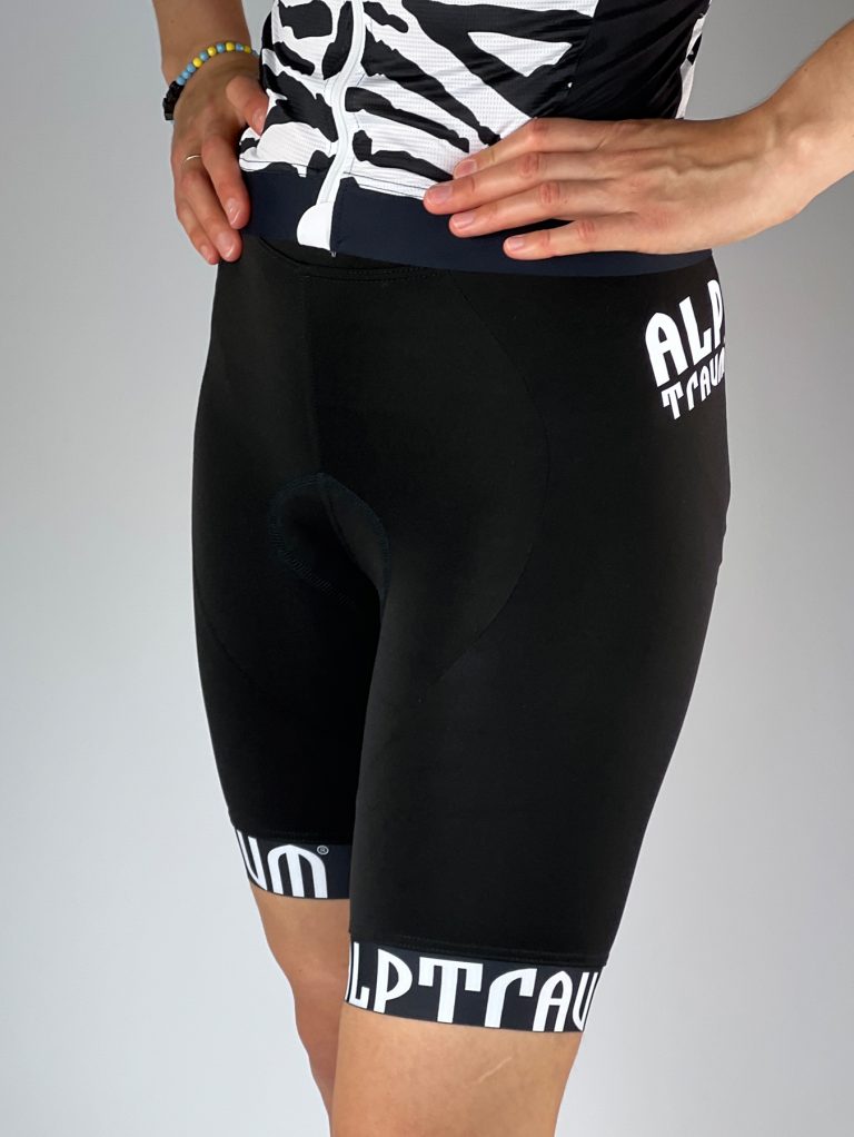 Wunderschöne, schlichte Radhose mit Profipolster und schönen Beinabschlussbünchen. Du wirst die Ausfahrten mit dieser Hose lieben, der softe breitere Bund ist angenehm und hält die Radhose zuverlässig, das excelente Profi-Polster von Dolomiti aus Italien schützt deinen Popo auch bei langen Radtouren. In schwarz mit weissen Details. Passt somit zu jedem Trikot.